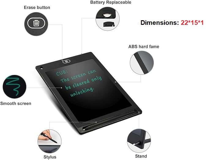 - استخدام تابلت الكتابة LCD دي بدلًا من ورق تدوين الملاحظات كل يوم سيوفر الكثير من الوقت. يمكن استخدام تابلت LCD هذا بشكل متكرر ويوفر من استخدام الورق وتكلفته مع تقليل نفايات البيئة.