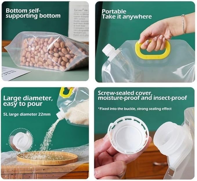- 【آلية إغلاق محكم مريحة】كيس تخزين الحبوب محكم الإغلاق مقاوم للرطوبة وسهل الاستخدام للغاية، يتميز الغطاء بتصميم إبزيم إغلاق ذاتي القفل والغطاء أكثر إحكامًا ويمكنه بسهولة تخزين المكسرات والحبوب والفاصوليا والوجبات الخفيفة والأرز وحبوب الإفطار والسكر والمسحوق والتوابل وما إلى ذلك أو أي نوع من الطعام بطريقة موفرة للمساحة ومستدامة.