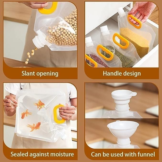 - 【كيس محكم الغلق مقاوم للرطوبة】تصميم رأسي موفر للمساحة يحافظ على مطبخك منظمًا، تسمح لك الأكياس الشفافة برؤية المحتويات بسهولة وتوفير الوقت، كما أن القطر الكبير مناسب للصب.