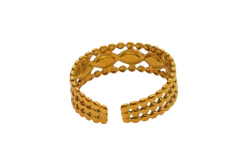 Generic - خاتم مفتوح من الستانلس ستيل بتصميم متعدد الطبقات - ذهبي 1899-مسبح-AR218