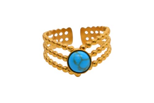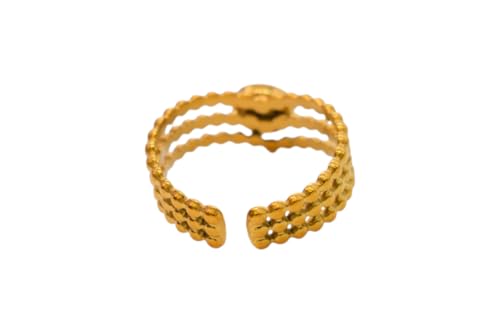 Generic - خاتم مفتوح من الستانلس ستيل بتصميم متعدد الطبقات - ذهبي 1899-مسبح-AR228
