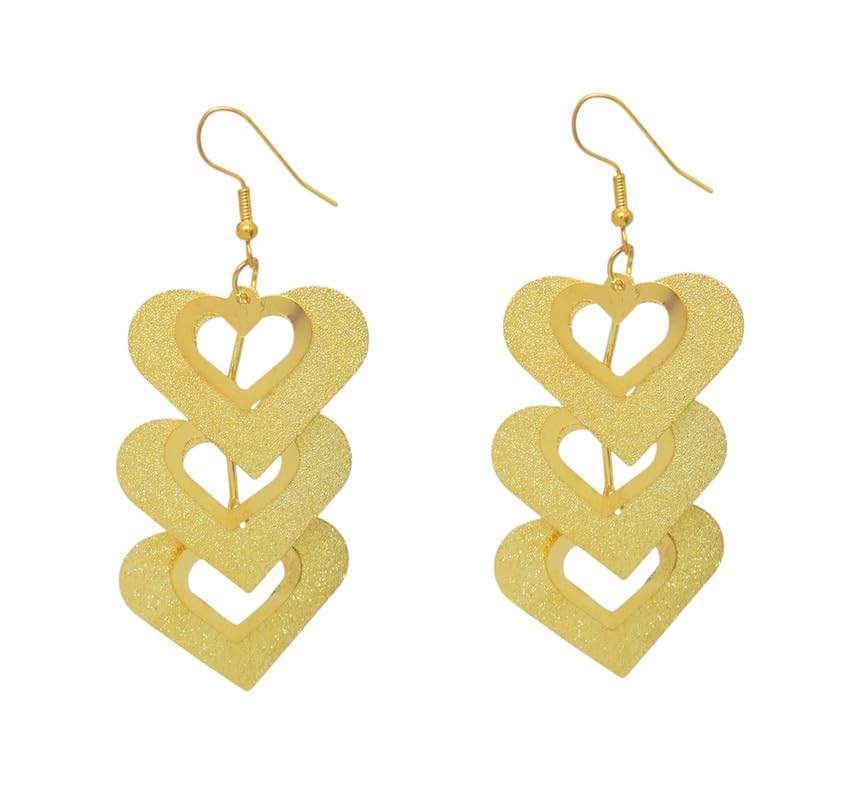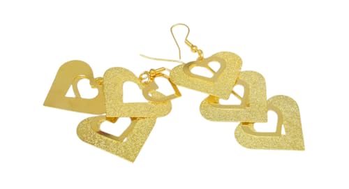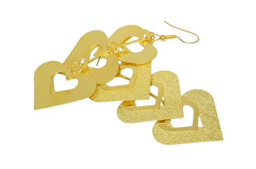 Generic - طقم حلقان لامعة متعددة الطبقات للنساء بتصميم قلب، لون ذهبي، من 2 قطعة