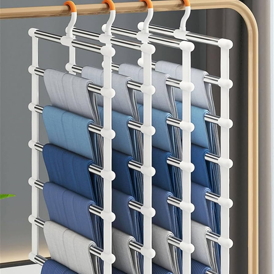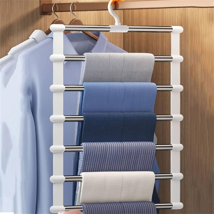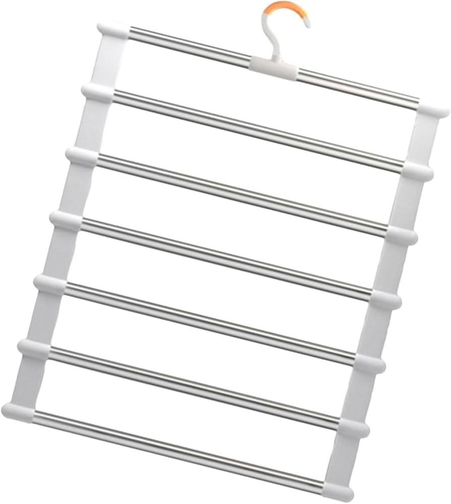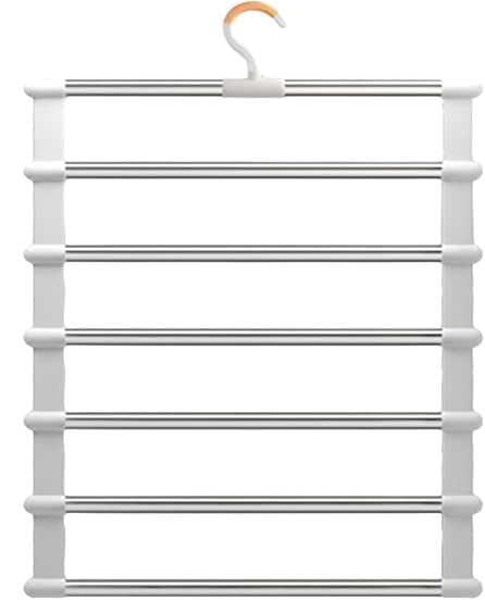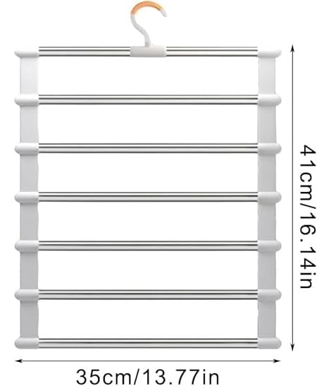 Generic - شماعة بنطلونات متعددة الطبقات، منظم دولاب موفر للمساحة من 6 طبقات، 35 × 41 سم، أبيض وفضي