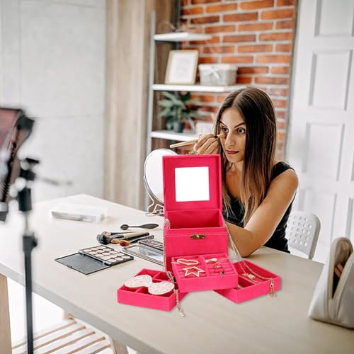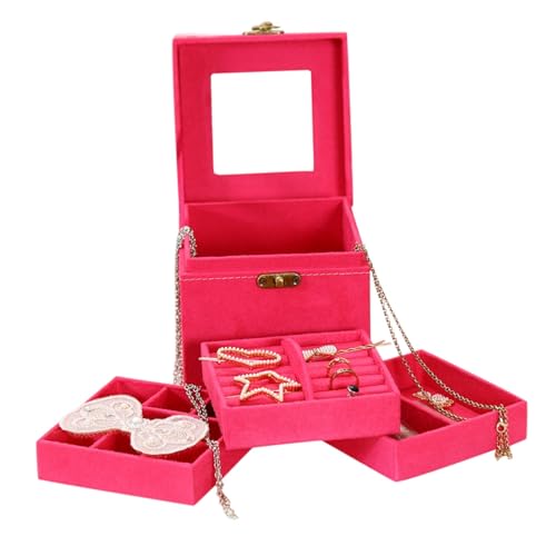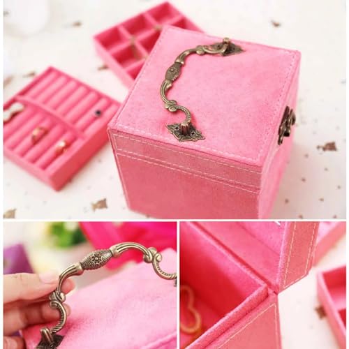 Generic - صندوق مجوهرات مخملي متعدد الطبقات بتصميم للخواتم والحلقان وحامل مكياج كتان