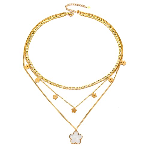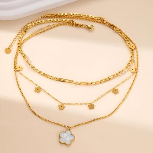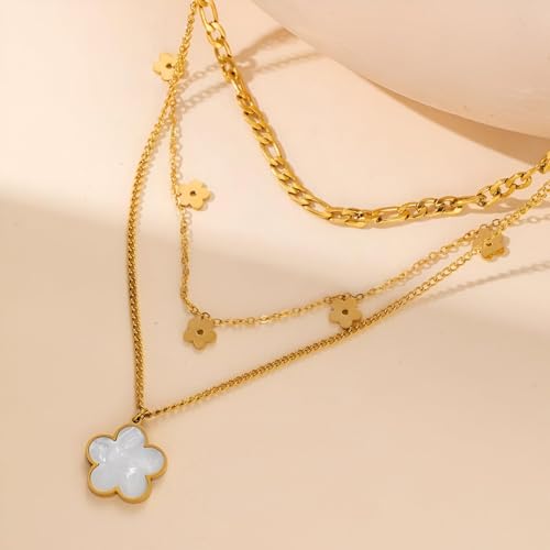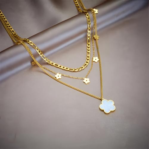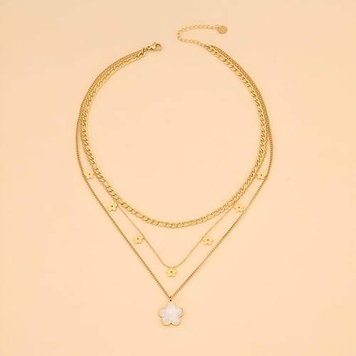 Generic - عقد متعدد الطبقات - سلسلة ذهبية عصرية متعددة الانماط مع زينة زهور، لامعة لتكمل أي زي
