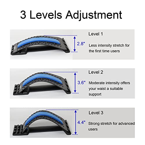 - 3 مستويات لتعديل الارتفاع - جهاز تمديد الظهر متعدد المستويات قابل للتعديل، مما يسمح لك بتخصيص ارتفاع التمدد حسب راحتك. اعتمادًا على مستوى راحتك، سهل زيادة أو تقليل شدة التمدد. يمكن لجميع الأعمار ومستويات اللياقة البدنية الاستفادة من تحسين المرونة.