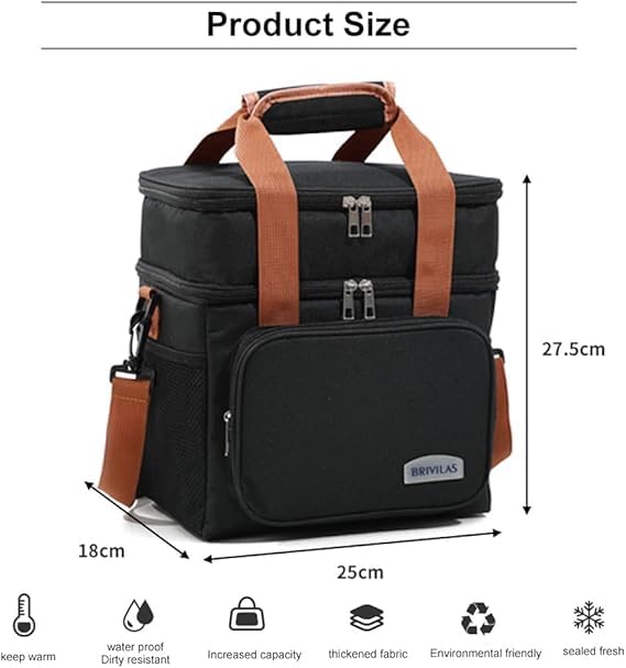 Generic - حقيبة تبريد عازلة متعددة المستويات، سعة ١٥ لتر، أسود بمقصورات متعددة وحزام كتف قابل للتعديل