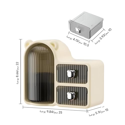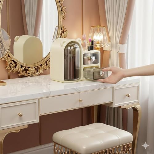 - يوفر نظام تخزين مقسم مع مساحات مخصصة لتنظيم فعال لمستحضرات التجميل واللوازم المكتبية