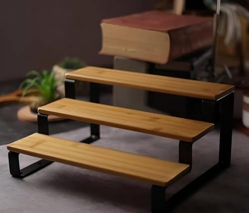 generic - منظم توابل متعدد المستويات - رف خشبي انيق مع دعامات معدنية، مثالي لترتيب برطمانات التوابل والزيوت والتوابل في زاوية مطبخ صغيرة