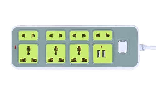Generic - مشترك كهربائي متعدد المخارج، 2500 واط، مع منفذين USB، 220-250 فولت، أخضر وأبيض (7 مخارج كهربائية مع مخرجين USB)