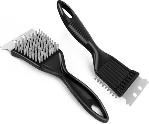 - أداء تنظيف عميق شديد التحمل - مصممة بشعيرات سلكية معدنية قوية، تزيل فرشاة تنظيف الموقد 2 في 1 بشكل فعال الشحوم العنيدة والطعام المحترق والبقايا الصعبة من مواقد الغاز ورفوف الفرن وشوايات الشواء والأسطح المصنوعة من الستانلس ستيل. توفر نتائج تنظيف احترافية في المنزل، مما يساعد على استعادة اللمعان والنظافة لمعدات مطبخك بأقل جهد.