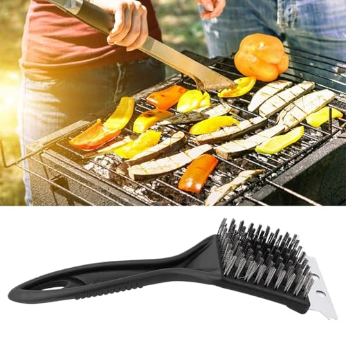 Generic - فرشاة ومكشطة سلكية متعددة الاغراض 2 في 1 لسطح الموقد، اداة تنظيف مطبخ شديدة التحمل لشعلات الغاز وصواني الفرن وشبكات الشواء واسطح الستانلس ستيل (اسود (عبوة واحدة)