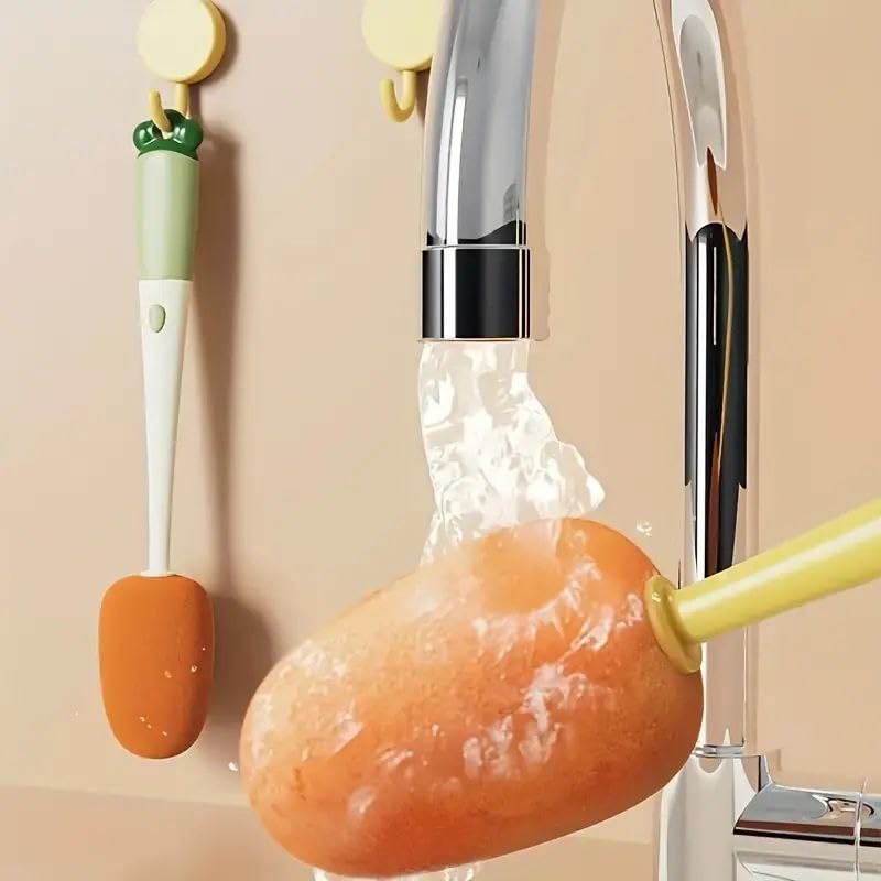 - تصميم جزر مريح للراحة والتحكم: يتميز المقبض الفريد الذي يأتي على شكل جزرة بقبضة مريحة ومانعة للانزلاق، مما يعزز التحكم ويقلل من تعب اليد أثناء جلسات التنظيف الطويلة. يجعل هذا التصميم من السهل الوصول إلى قواعد الزجاجات العميقة، والأعناق الضيقة، والحواف المنحنية، مع الحفاظ على جفاف يديكِ وحمايتهما من التعرض المباشر للمنظفات.