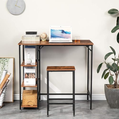Generic - طاولة بار متعددة الأغراض مزودة بأرفف تخزين من ام ايه ستيل - مجموعة طاولة ومقاعد صناعية عالية للمطبخ أو الدراسة أو منطقة تناول الطعام