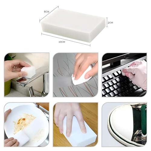 Generic - إسفنجة على شكل أستيكة متعددة الأغراض، مصنوعة من فوم الميلامين عالي الكثافة لإزالة البقع العنيدة وآمنة للاستخدام على معظم الأسطح، عبوة من 10 إسفنجات، مقاس 100 ملم × 60 ملم × 20 ملم، لون أبيض