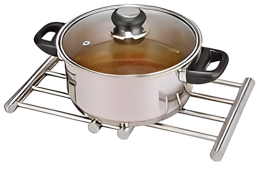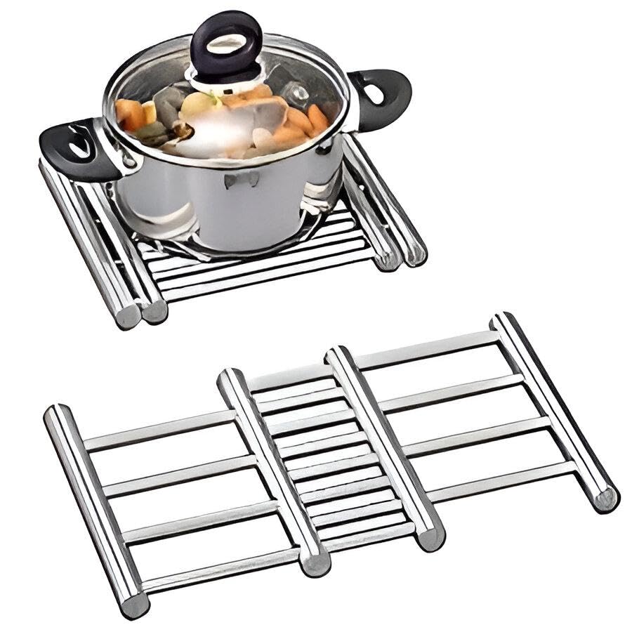 Generic - دعامة للاواني الساخنة متعددة الاغراض - حامل قابل للتوسيع من الستانلس ستيل مقاوم للحرارة، مناسب للصواني واواني الطهي بلون فضي (قطعة 2)