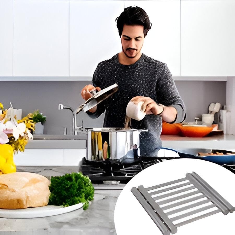 - مصنوع من الستانلس ستيل عالي الجودة، يضمن هذا الحامل المقاوم للحرارة المتانة ومقاومة التآكل، مما يوفر ملحق مطبخ طويل الأمد يتحمل درجات الحرارة العالية والاستخدام اليومي بسهولة.