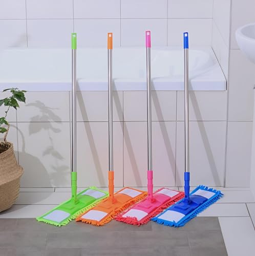 Generic - مساحة موب/شرشوبة متعددة الأغراض - بتصميم مسطح من المايكروفايبر متعددة الاستخدامات للتنظيف الجاف والرطب، رأس دوار 360°، مقبض تلسكوبي للأرضيات والزجاج والأسقف والجدران (4 قطع من الألوان المعروضة)