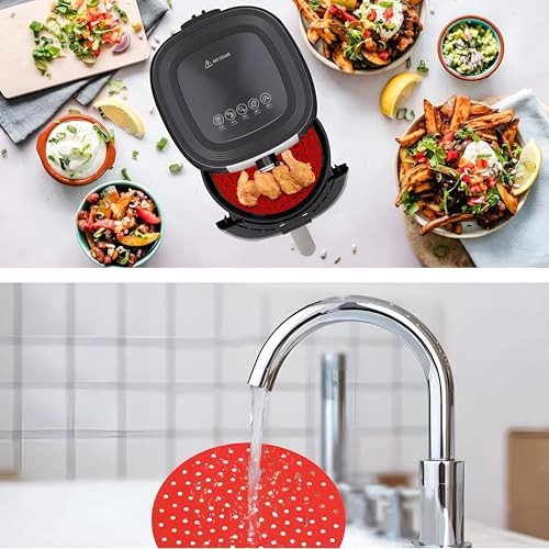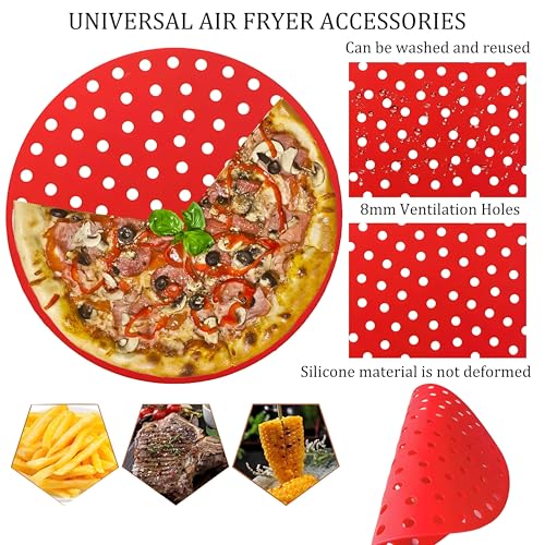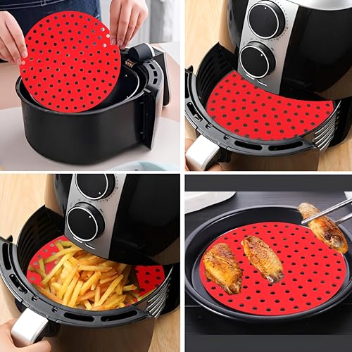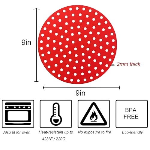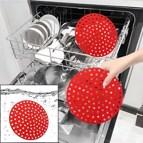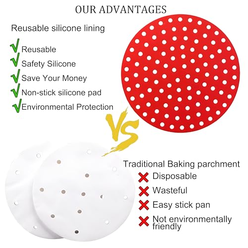 Generic - بطانات دائرية متعددة الاستخدامات من السيليكون لمقلاة الهواء، وسادات سلة غير لاصقة قابلة لإعادة الاستخدام تعمل مع المقالي الهوائية والأفران وأواني الطهي تحت الضغط للطهي دون عناء