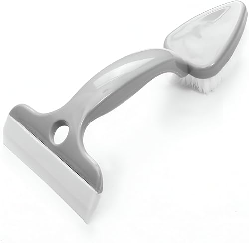 - تتميز فرشاة التنظيف مزدوجة الرأس هذه بفرشاة متينة بشعيرات صلبة مصممة لمعالجة الأوساخ العنيدة والبقع على الأسطح الكبيرة مثل البلاط وأسطح المناضد، إلى جانب مكشطة مثلثة مرنة تصل إلى الزوايا الضيقة حول الصنابير وبين خطوط الجص لتنظيف شامل.