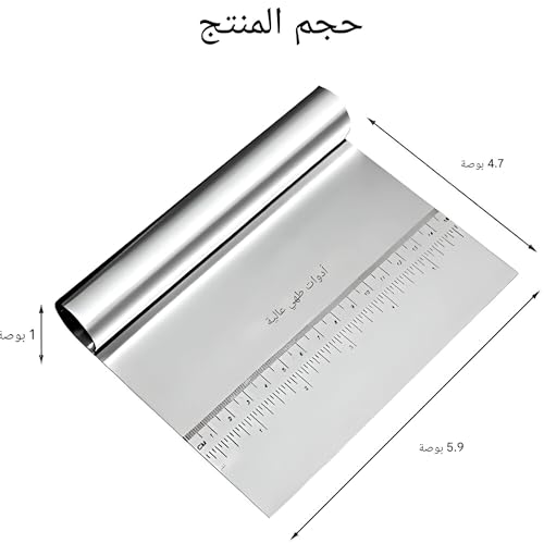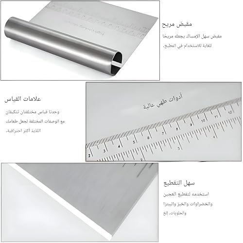 - مصنوعة من الستانلس ستيل عالي الجودة، مكشطة العجين هذه مقاومة للصدأ، مما يضمن طول العمر وملامسة آمنة للطعام. تسمح علامات القياس المنقوشة بقياس سريع ودقيق، مما يجعل وصفاتك أكثر احترافية وتضمن تحقيق التوازن المثالي للمكونات في كل مرة.