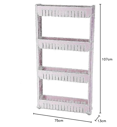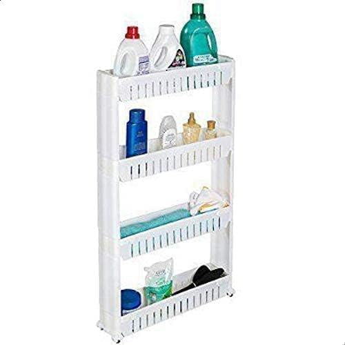 H-Home - رف تخزين المطبخ الرفيع متعدد الاستخدامات 4 طبقات بعجلات، بلاستيك، بيج