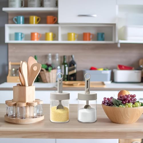 Generic - برطمان تخزين متعدد الاغراض - محكم الغلق مع ملعقة قابلة للسحب لتخزين التوابل والسكر والملح (6 قطع)