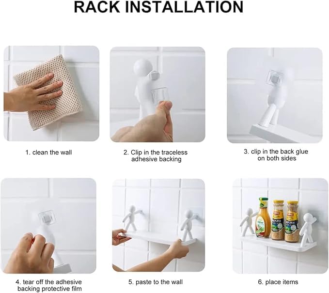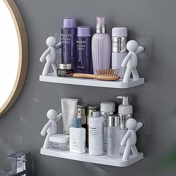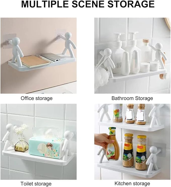 Generic - رف منظم تخزين متعدد الاغراض وحامل يثبت على الحائط (لا يحتاج الى ثقب) - بلاستيك ايه بي اس - اكسسوارات الحمام والمطبخ (قطعة واحدة)