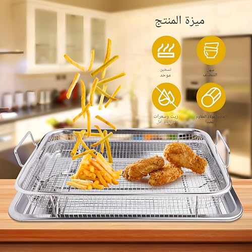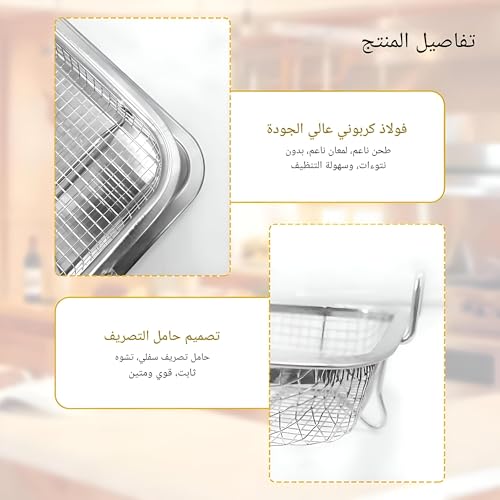 - نقدم صينية القلي والتصريف المبتكرة 2 في 1 المصنوعة من الستانلس ستيل، المصممة للقلي والخبز والتقديم. تتيح لك أداة المطبخ متعددة الاستخدامات هذه الاستمتاع بالأطعمة المقلية المقرمشة اللذيذة بدون زيت زائد، مما يجعلها خيارًا أكثر صحة لوجباتك.