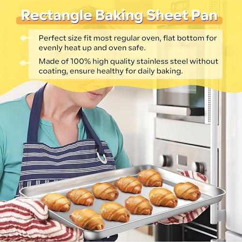 - متينة وقوية، صينية الخبز هذه مصنوعة من الفولاذ المقاوم للصدأ، مما يضمن استخدامًا يدوم طويلًا. آمنة للاستخدام في الفرن وتوفر توزيعًا متساويًا للحرارة للطعام المطبوخ بشكل مثالي. كما أنها مقاومة للصدأ ومصممة لتحمل الاستخدام المنتظم بمرور الوقت.