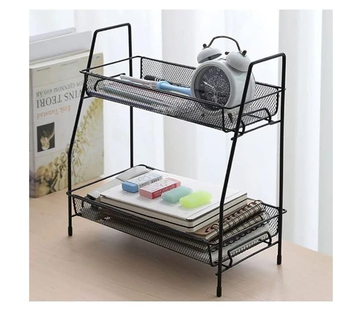 generic - منظم تخزين حديدي متعدد الاغراض من طبقتين - رف موفر للمساحة لتوابل المطبخ ومستلزمات الحمام وديكور غرفة المعيشة (اسود (عبوة واحدة))