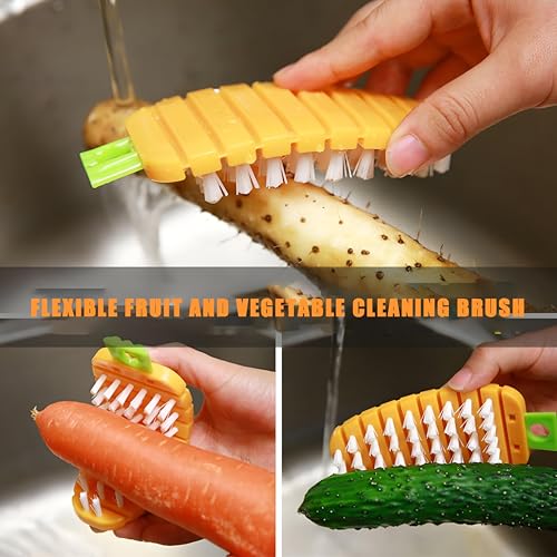 Generic - فرشاة متعددة القطاعات - حل تنظيف فريد للفواكه والخضروات، فرشاة بتصميم مرن ونمط مستوحى من الجزر لتجربة تنظيف ممتعة (4 قطع)