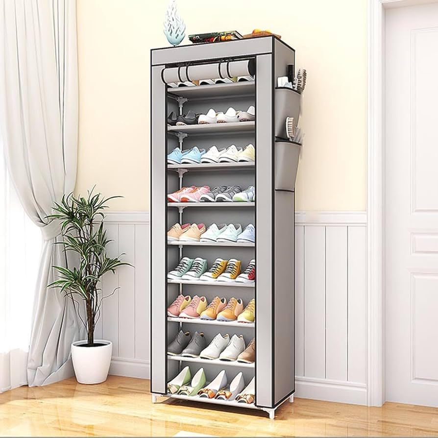 - حذاء قماشي متعدد الأرفف مصنوع من مادة قوية وهيكل معدني ثابت يدوم طويلاً