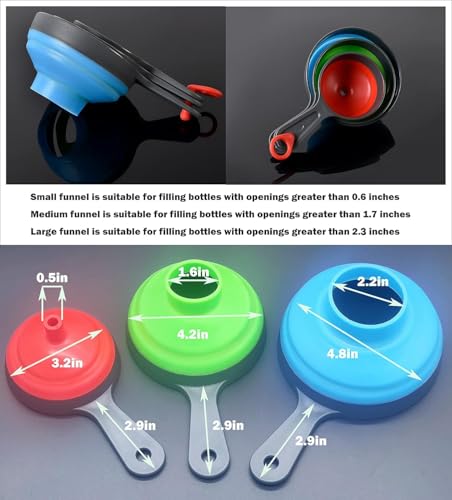 - 【سيليكون عالي الجودة وآمن على الطعام】مصنوع من السيليكون الممتاز والمرن والمتين، كل قمع آمن تمامًا لملامسة الطعام، ومقاوم للحرارة، وقادر على تحمل الاستخدام المتكرر، مما يوفر موثوقية طويلة الأمد مع دعم إعداد الطعام الصحي بدون قلق كل يوم.
