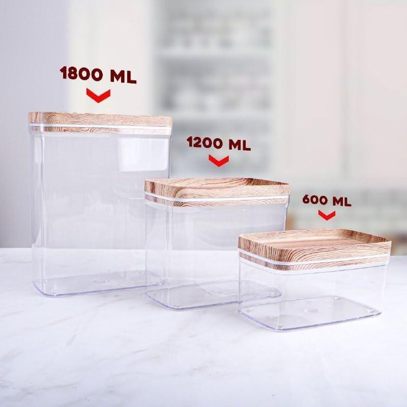 Generic - حلول تخزين متعددة المقاسات - مجموعة برطمانات اكريليك من 3 قطع مع اغطية آمنة، مثالية لتنظيم المطبخ وحفظ الطعام، 600 مل، 1200 مل، 1800 مل