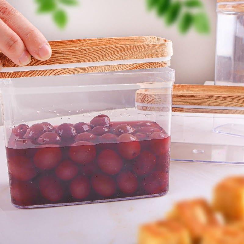 - تحتوي هذه المجموعة على ثلاث حاويات اكريليك شفافة بأحجام مختلفة (600 مل، 1200 مل، 1800 مل)، مصممة لاحتياجات التخزين متعددة الاستخدامات في المطبخ، مما يسمح بسهولة الرؤية والوصول إلى العناصر المخزنة، مع غطاء محكم الغلق من السيليكون للحفاظ على الطعام طازجًا.