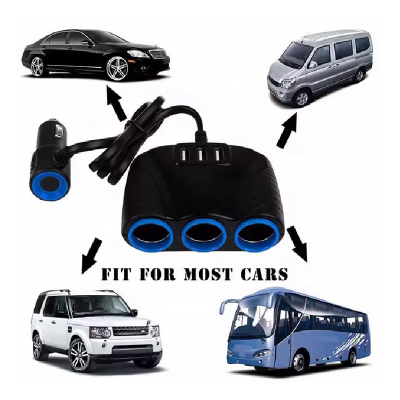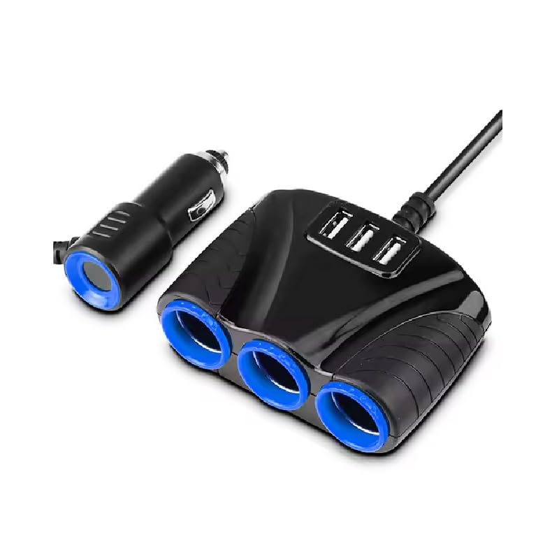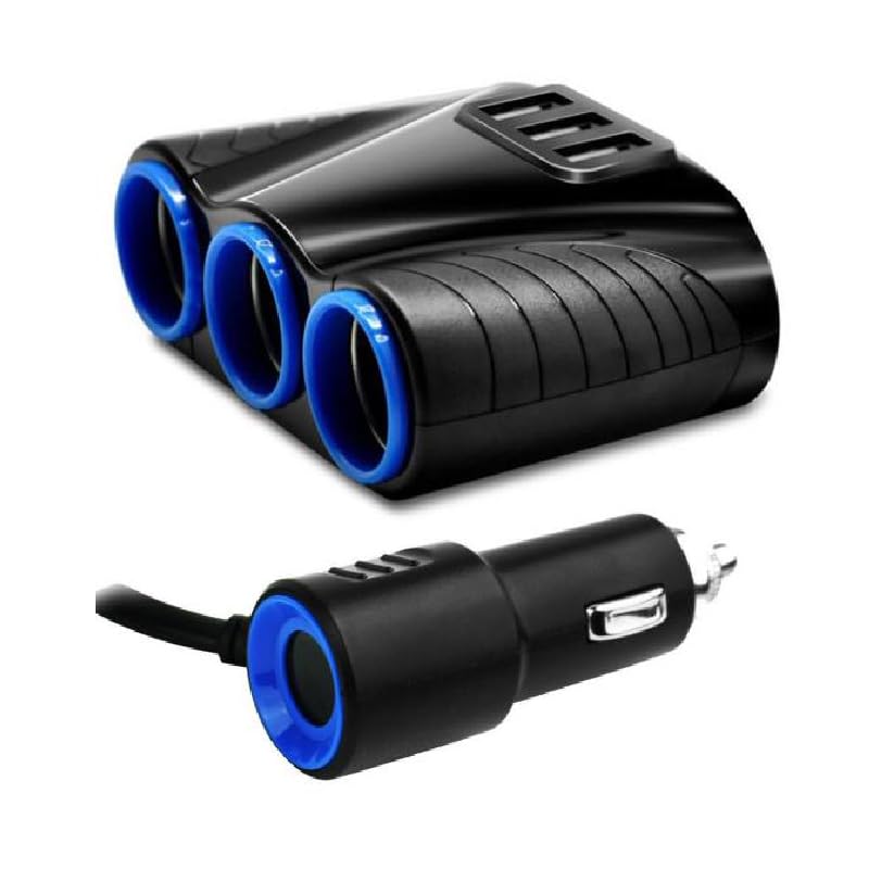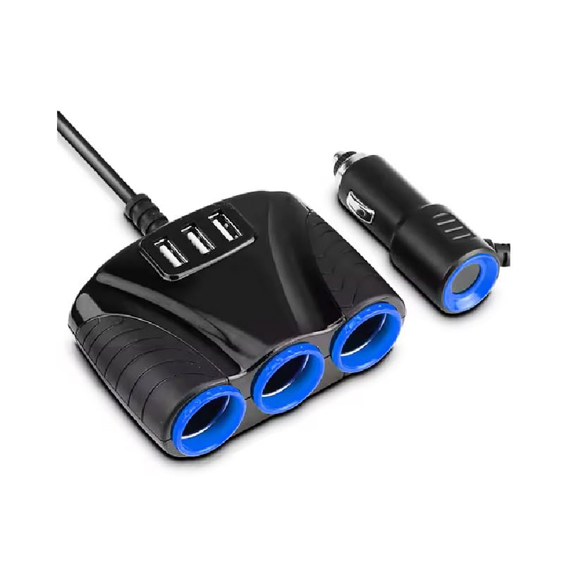 Generic - قابس متعدد الفتحات، موزع مقبس ولاعة السيارة ، للسيارات والشاحنات (3 يو اس بى - اسود - 3عين ، كود : 9000 ) - من كابر تريد