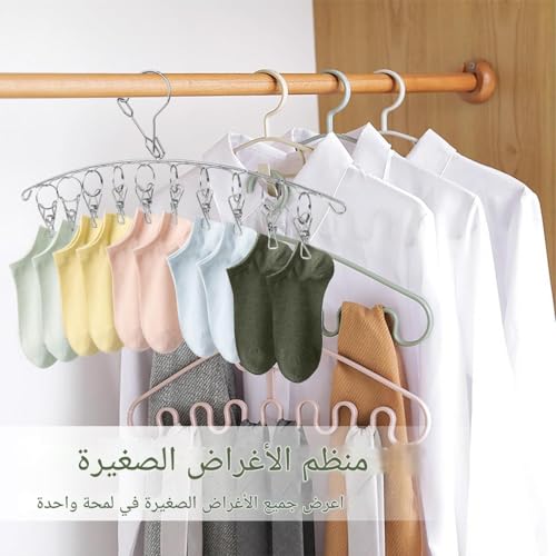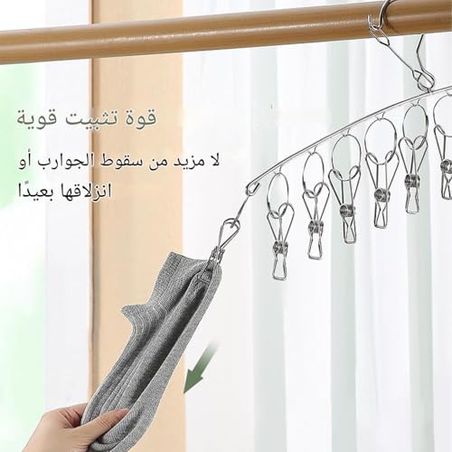 Generic - مشبك جوارب متعدد الاستخدامات - منظم ملابس صغير متعدد الاستخدامات مع 10 مشابك مدمجة للتجفيف على حبل الغسيل، يدعم الملابس الداخلية وحمالات الصدر، لمسة نهائية فضية مدمجة، تصميم مقاوم للرياح
