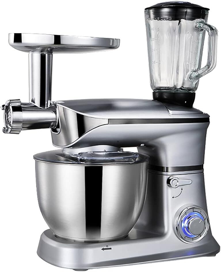Generic - عجان كهربائي متعدد السرعات والاستخدام – مقاوم للصدأ – تصميم أنيق بعدة ألوان وأشكال – خلاط وعجان للعجين والحلويات والمخبوزات (خلاط عجين فضي بمفرمة لحم 2000 وات – سعة 10 لتر)