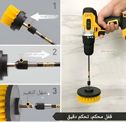 - تتميز الفرش بعمود سريع التغيير يبلغ طوله 64 سم، وهو متوافق مع معظم الشنيور اللاسلكي ومفكات اللقم، بما في ذلك العلامات التجارية الشهيرة مثل ديوالت وبوش وماكيتا، مما يجعل الإعداد بسيطًا وقابلًا للتكيف مع احتياجات التنظيف المختلفة.