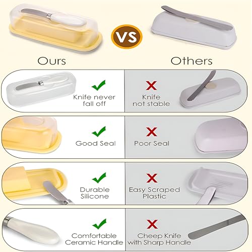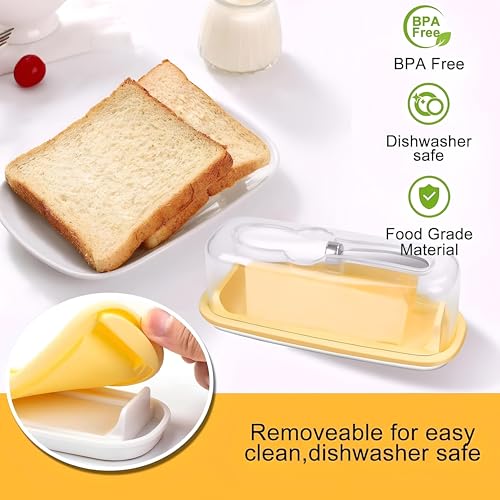 Generic - حاوية زبدة متعددة الاستخدامات - غطاء عصري بسكين، مثالية لتناول الطعام في المنزل، تتضمن قاعدة سيليكون قابلة للازالة، مصنوعة من مادة خالية من BPA، امنة للاستخدام في غسالة الصحون