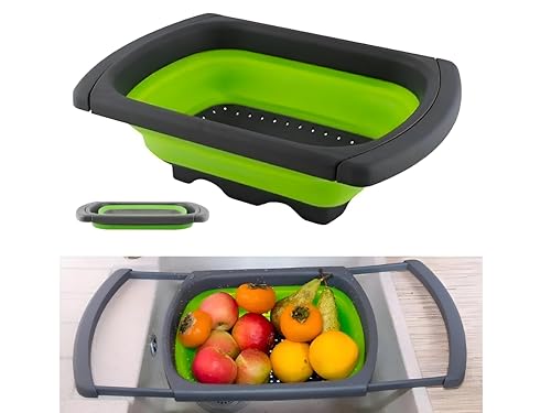 Generic - مصفاة متعددة الاستخدامات - مصفاة مطبخ قابلة للطي بمقابض ممتدة، عملية لتصريف الفواكه والمعكرونة والخضروات في مساحات محدودة