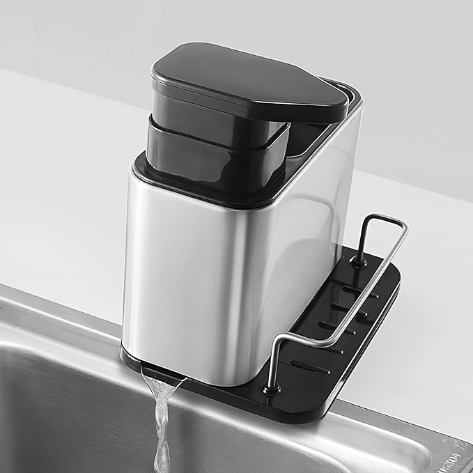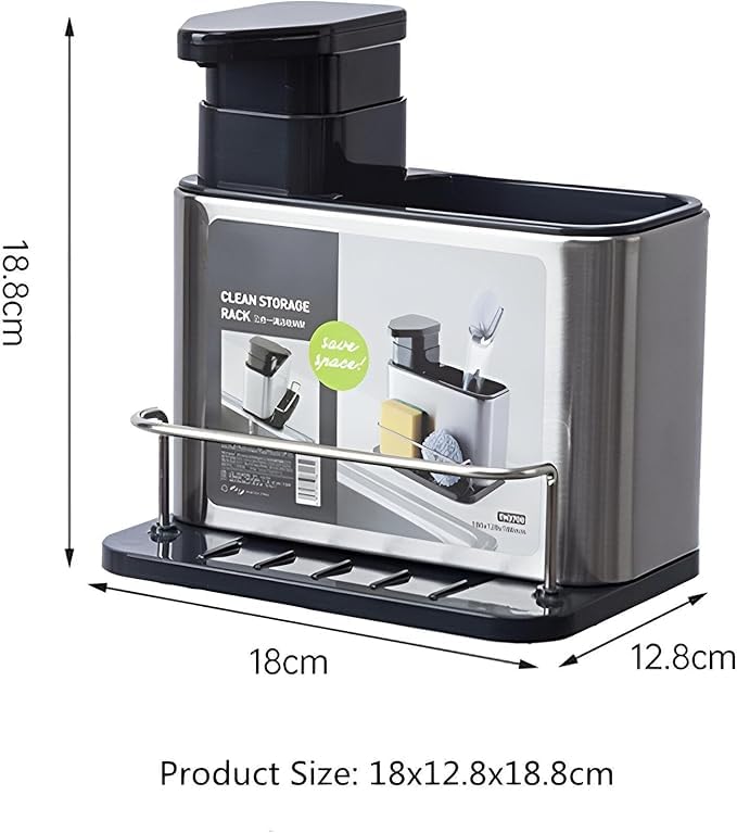 - تصميم متعدد الوظائف 3 في 1: يجمع هذا المنظم بين موزع صابون سائل قابل لإعادة التعبئة، وحجرة تخزين علوية للفرش وأدوات التنظيف، وحامل أمامي مع حاجز حماية للإسفنج وأدوات الغسيل