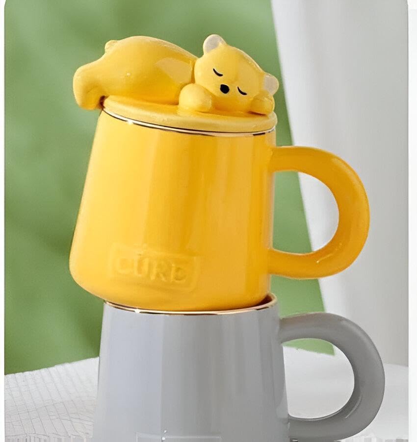 Generic - مج متعدد الاستخدامات - كوب بورسلين جميل بتصميم دب لطيف، مثالي للازواج، مثالي لجميع انواع المشروبات، من القهوة الساخنة الى الحليب البارد، مثالي للاستخدام في المنزل او المكتب. أصفر