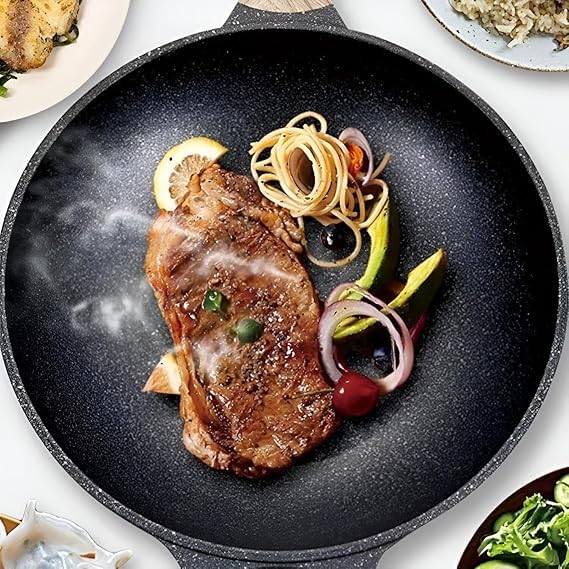 - خامة متينة عالية الجودة تتحمل الاستخدام اليومي وتوزع الحرارة بشكل متساوي.