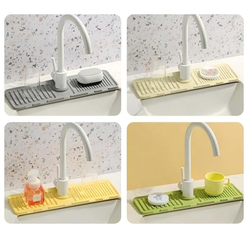 - الحفاظ على مفرش حنفية حوض المطبخ أمر سهل؛ ما عليك سوى شطفه أو مسحه بانتظام للحفاظ عليه. يوفر السطح المبتكر غير القابل للانزلاق الثبات حتى في الظروف الرطبة، مما يحمي الأطباق والأواني الزجاجية. تمنحك هذه الميزة راحة البال أثناء تحضير الطعام وتنظيفه، مما يضمن سلامتك وسلامة أدوات المطبخ الخاصة بك أثناء العمل.