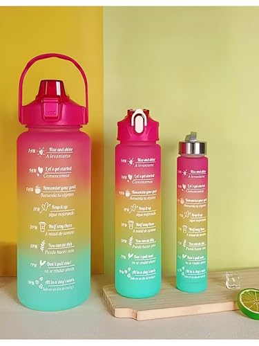 Generic - زجاجات مياه رياضية محفزة متعددة الاستخدامات 3 في 1 بسعة 2 لتر و900 مل و300 مل، مصنوعة من البلاستيك غير السام بتصميم متدرج أنيق لجميع الرياضات، 3 قطع