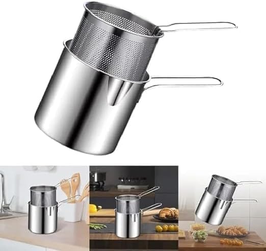 Generic - قلاية متعددة الاستخدامات من الفولاذ المقاوم للصدأ بسعة 1.3 لتر مع سلة شبكية لبطاطس مقرمشة رائعة وفراخ ووروبيان وطهي صحي وسهل بمقابض مقاومة للحرارة