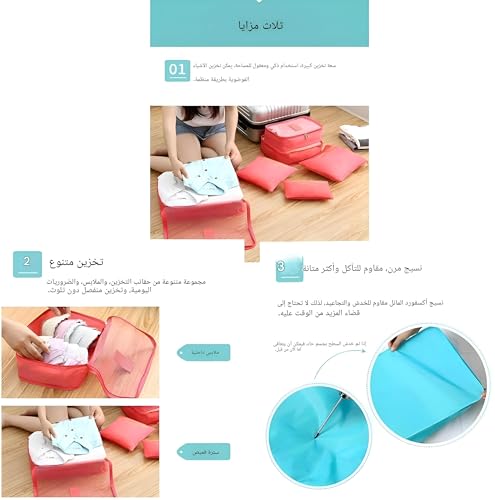 - 🌟 قم بتحويل تجربة السفر الخاصة بك مع مجموعة منظم الأمتعة المكونة من 6 قطع! قل وداعًا للبحث في حقيبتك بحثًا عن الضروريات ومرحبًا بالتنظيم بدون مجهود. تم تصميم هذا الملحق الأساسي لتحسين تجربة السفر الخاصة بك، مما يسمح لك بالتركيز على ما يهم حقًا - رحلتك!