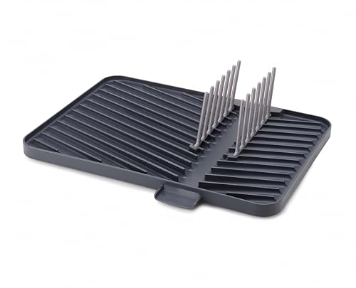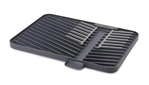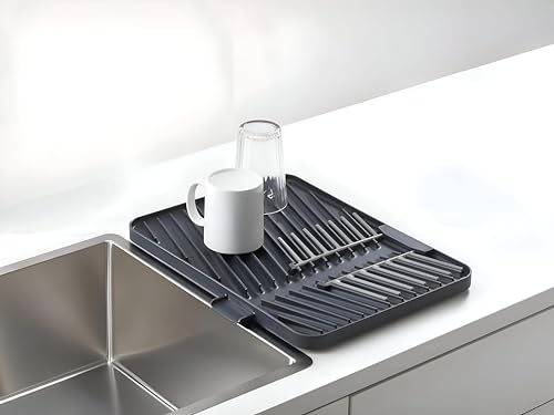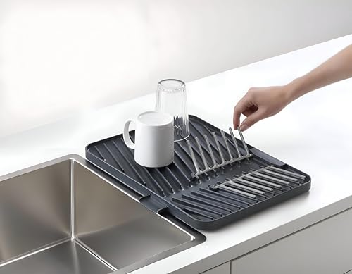 Generic - صينية متعددة الاستخدامات - لوح تصريف متعدد الوظائف مع رف أطباق قابل للطي، رف مدمج، لمسة نهائية رمادية عصرية، مقاس عالمي واحد، للمطابخ الصغيرة وأسطح الطاولات الضيقة